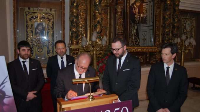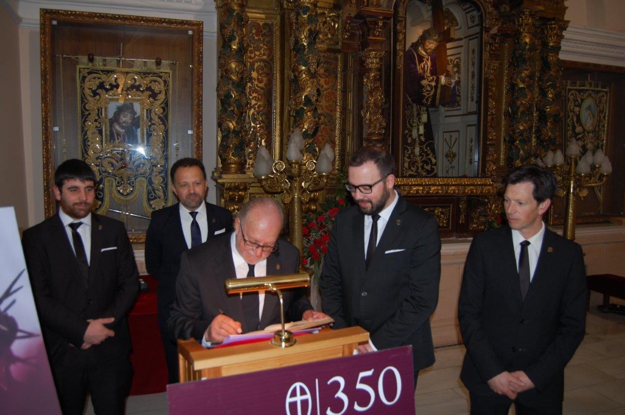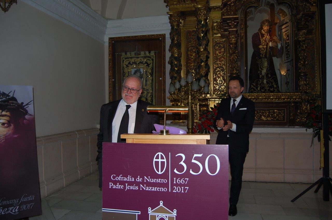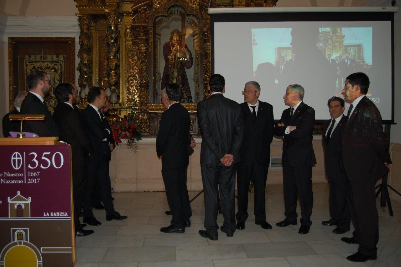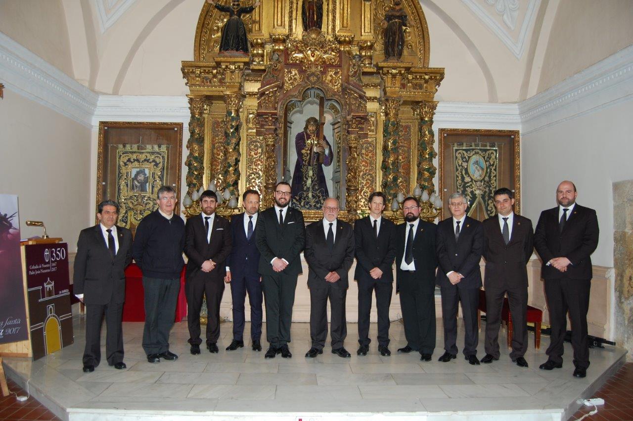 Convocados por el “Cavido” y con motivo del 350 aniversario de la refundación de la Cofradía, los Antiguos Jueces acudieron al Pregón Nazareno donde se les entregó como recuerdo de su paso por el “Cavildo” una réplica en cristal de la medalla de plata que en su día llevaron durante sus años de dedicación al servicio de Nuestro Padre Jesús Nazareno.